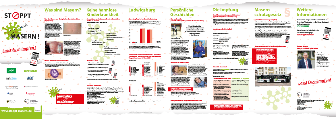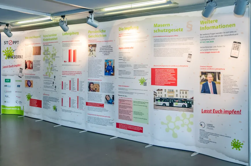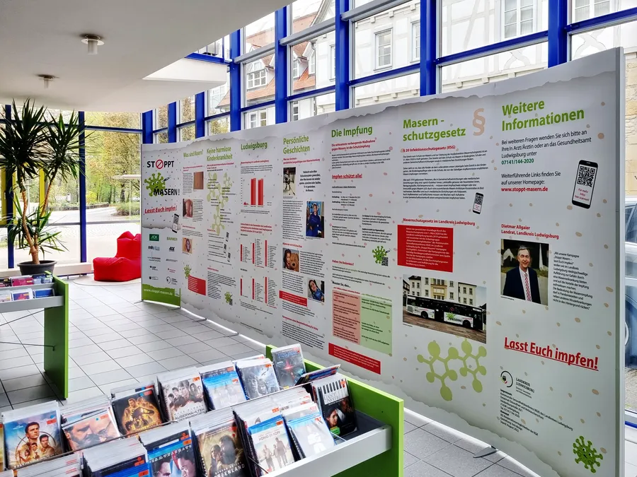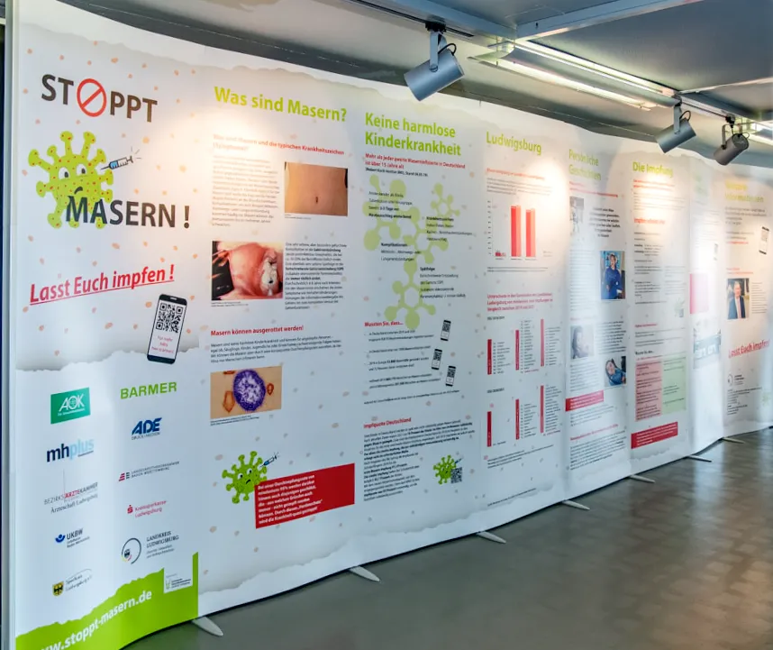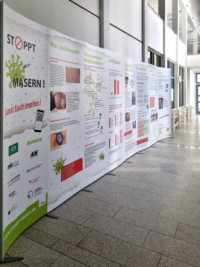 Die neue Wanderausstellung zum Thema Masern ist zum Verleih an Gemeinden, Betriebe, Krankenkassen etc. kostenlos verfügbar.